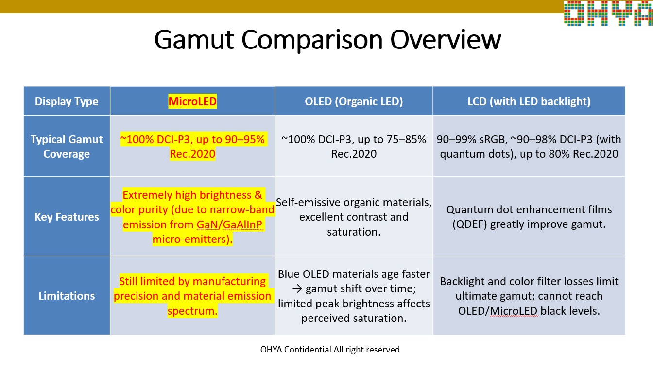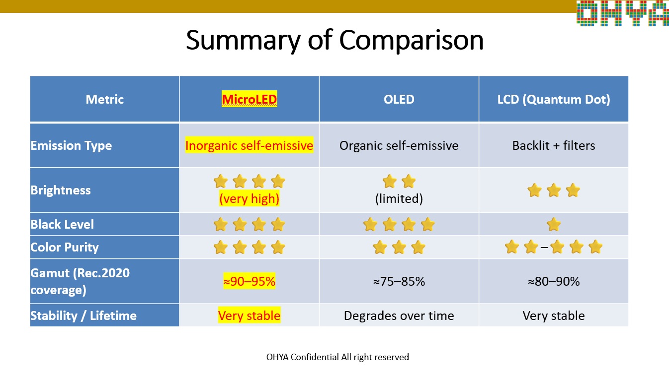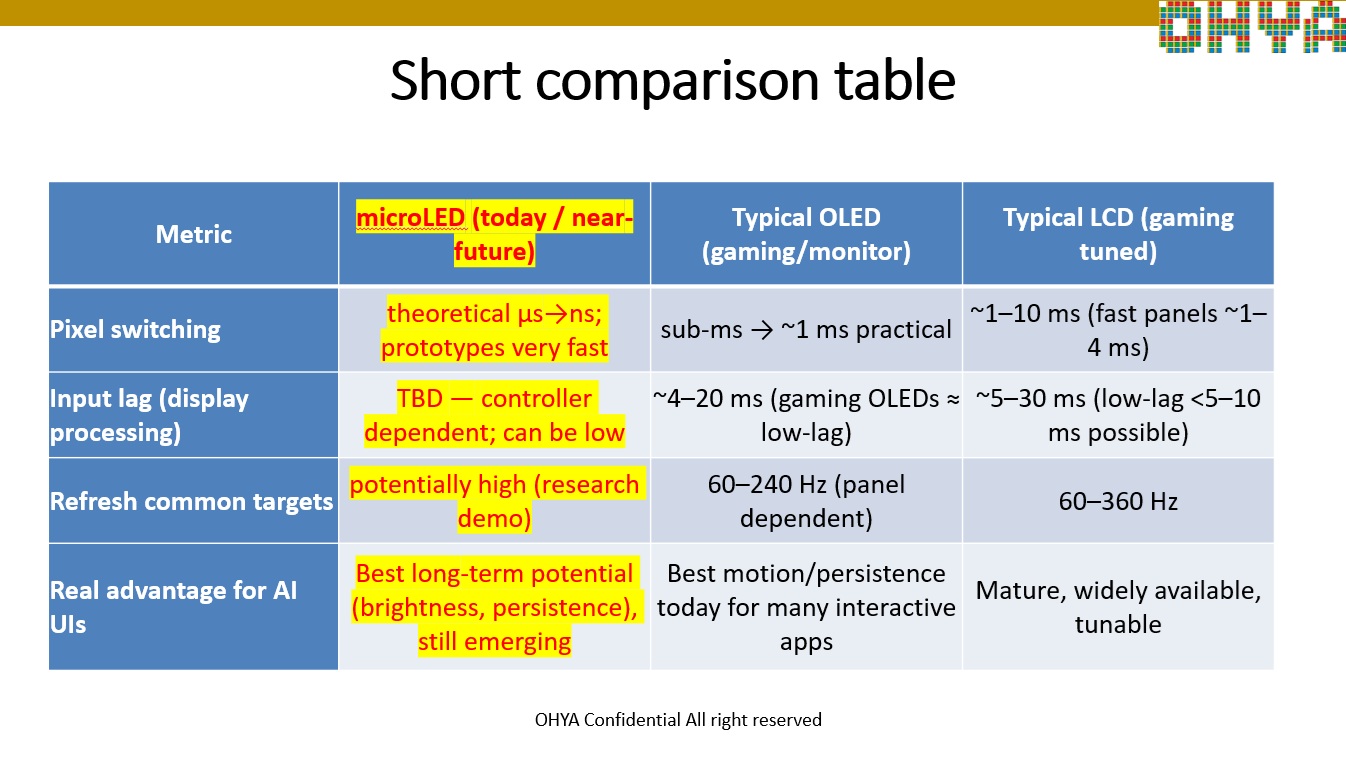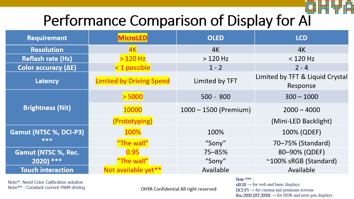 Comparison of LCD, OLED and MicroLED Technologies for AI applications