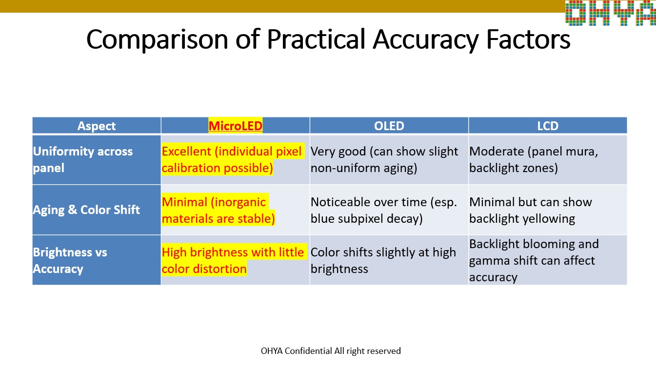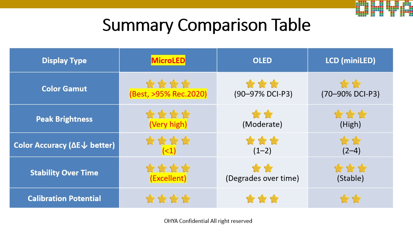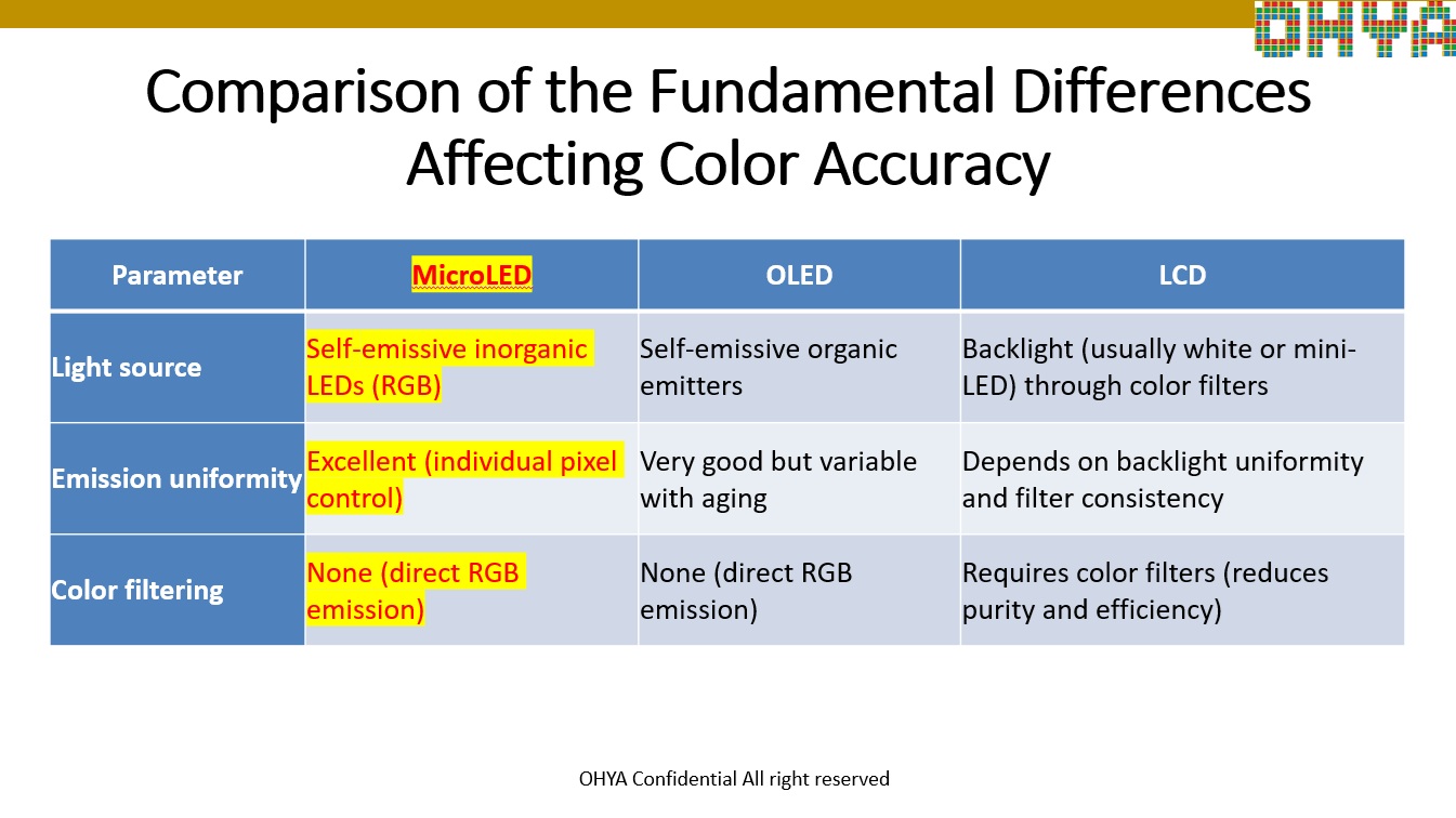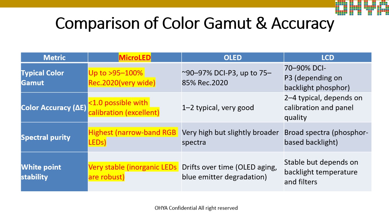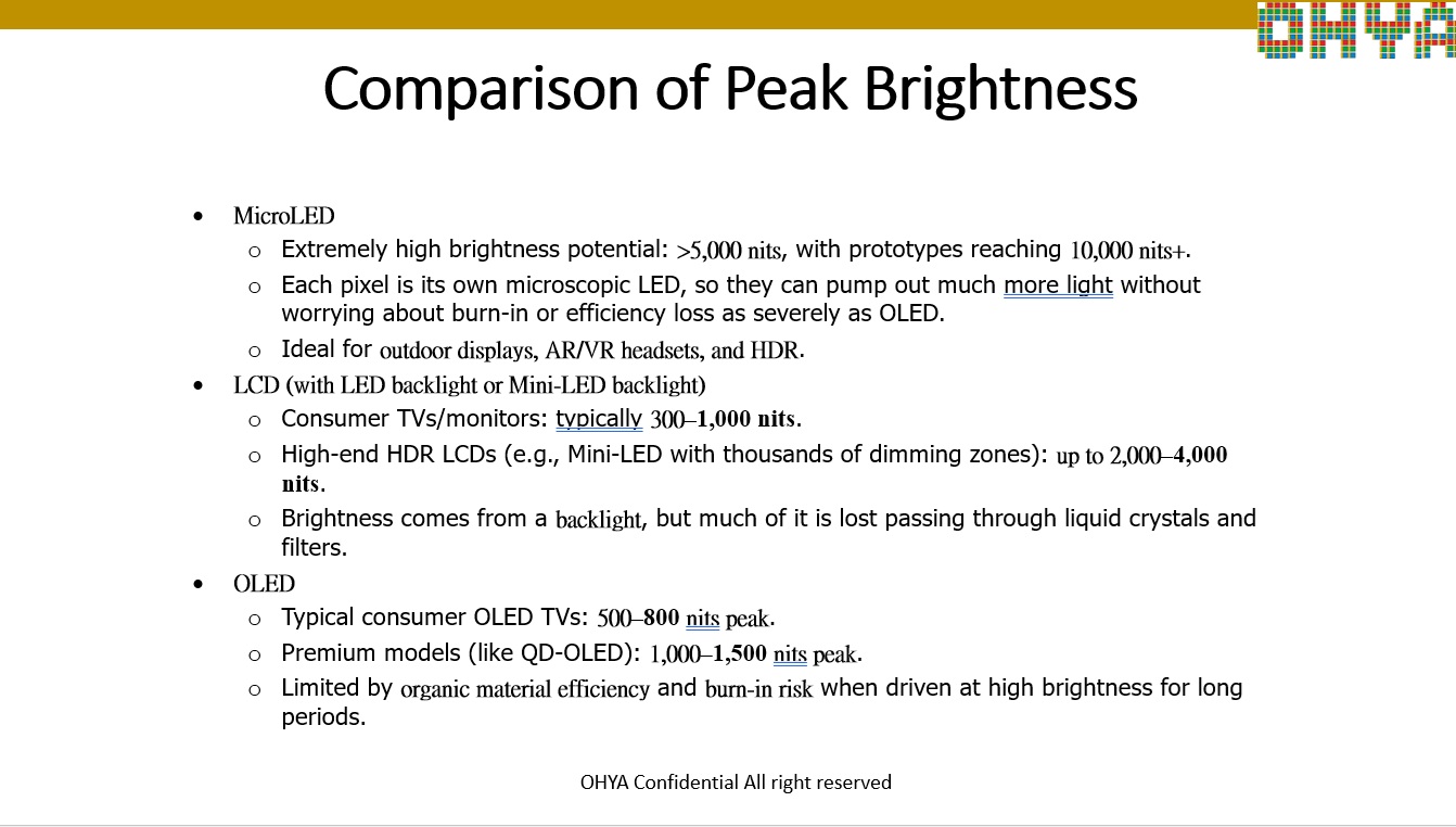 Comparison of LCD, OLED and MicroLED Technologies for AI applications
