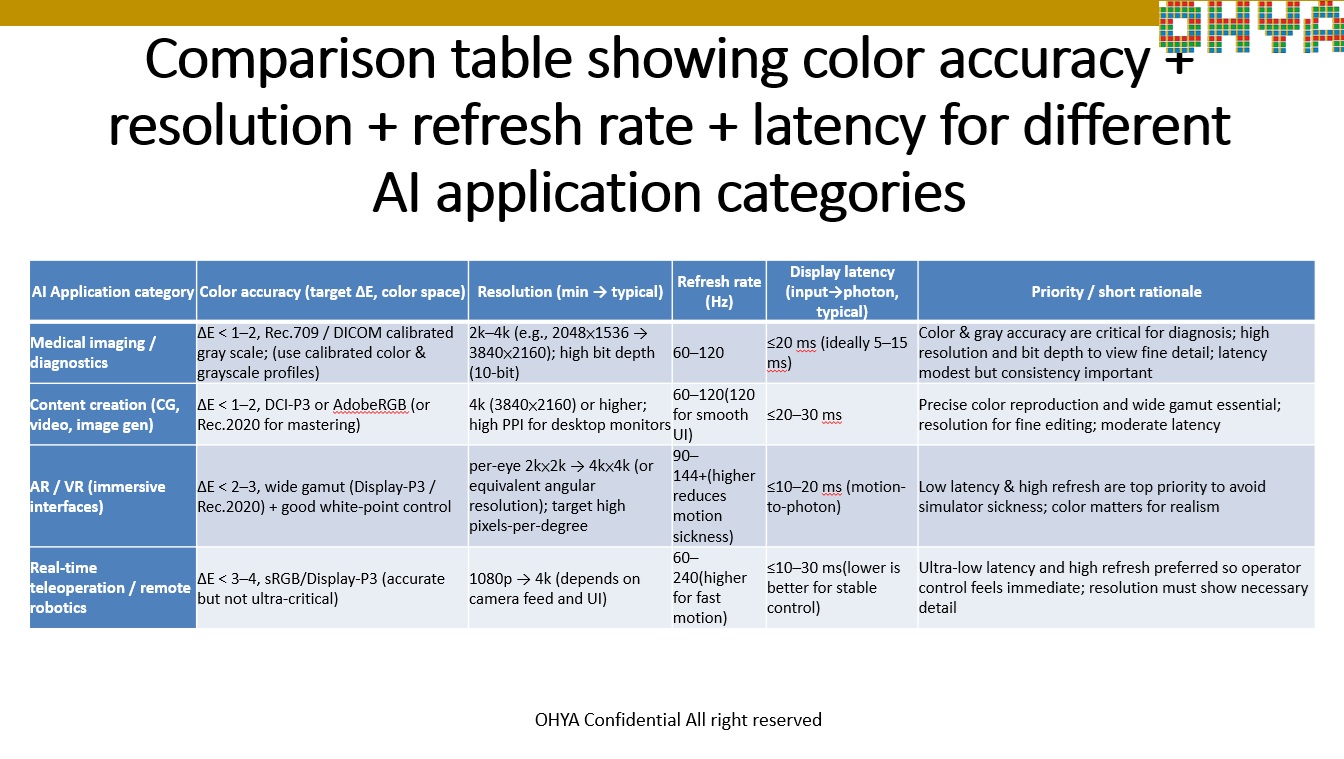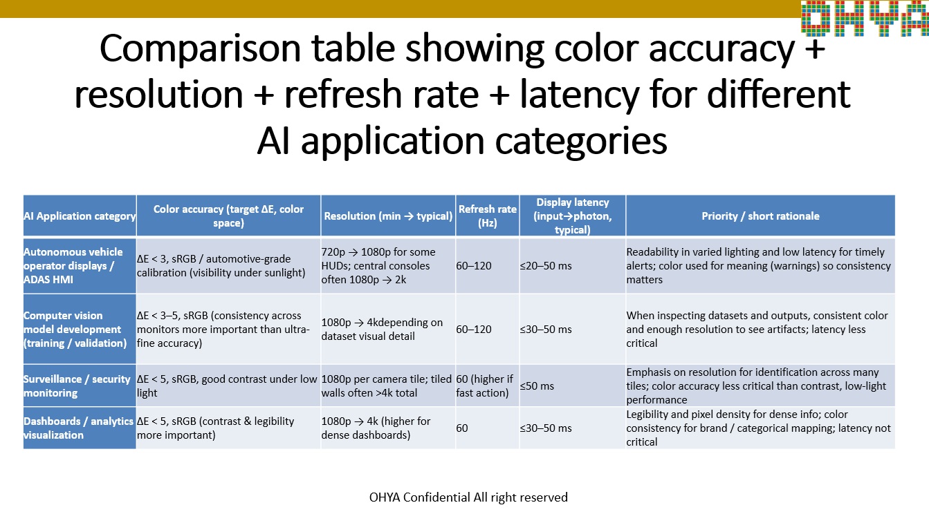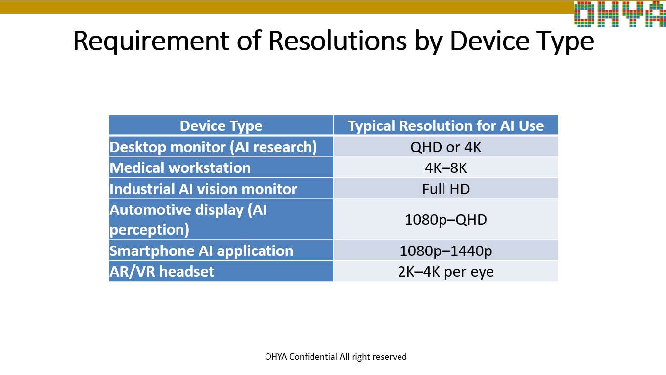 Requirements of Display for AI applications